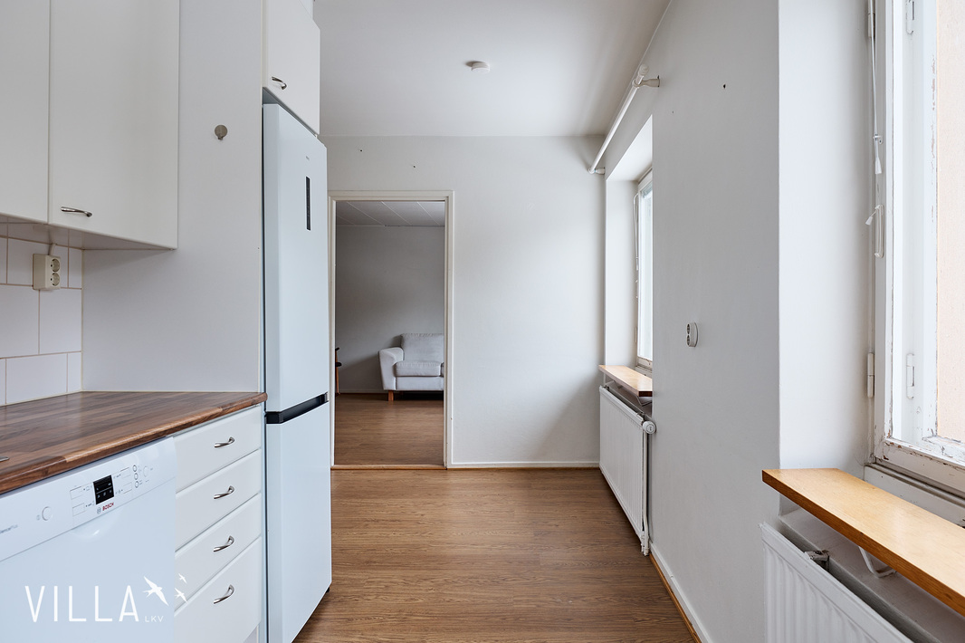 Asunnon pohjaratkaisu on todella onnistunut. Vaikka yhtiöjärjestys kertoo asunnon olevan yksiö niin käytännössä iso makuualkovi toimii huoneen tavoin ja 55 asuinneliötä antaa asumiselle kivasti väljyyttä. Huoneisto on siisti ja sen pintoja on päivitetty matkan varrella hyvällä fiiliksellä.