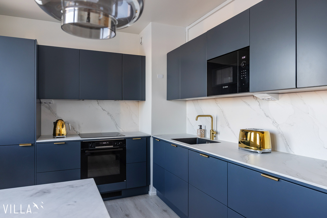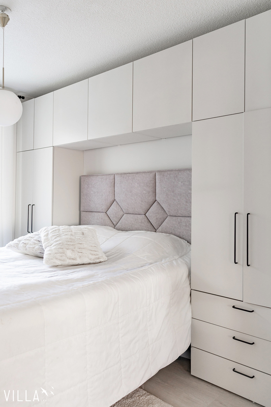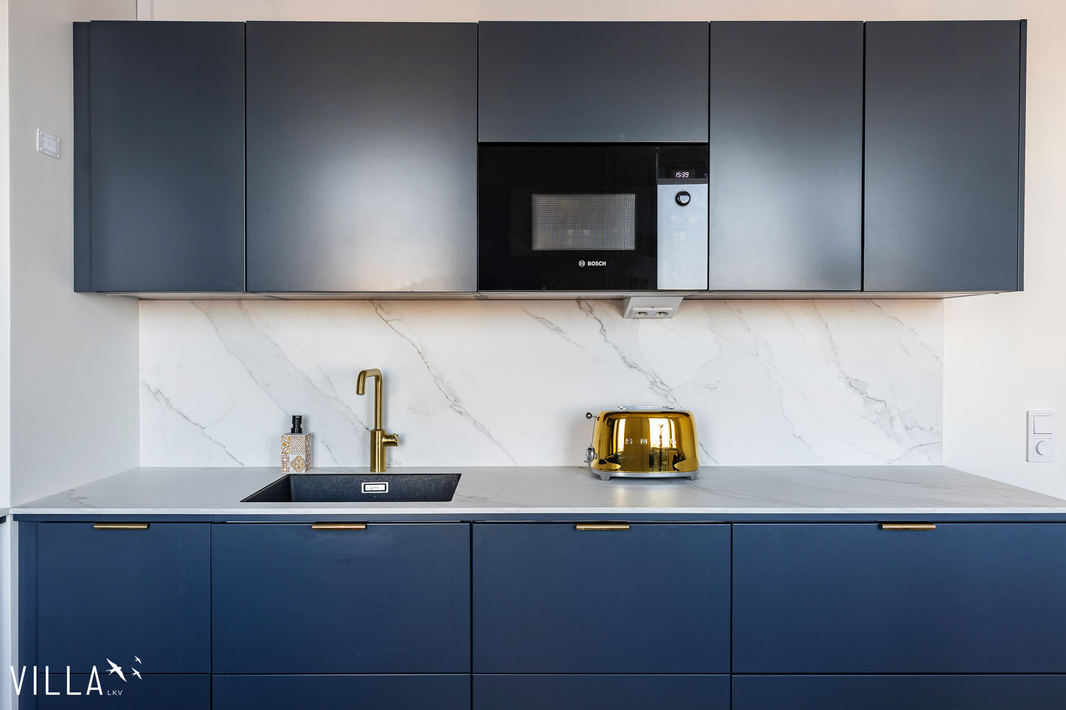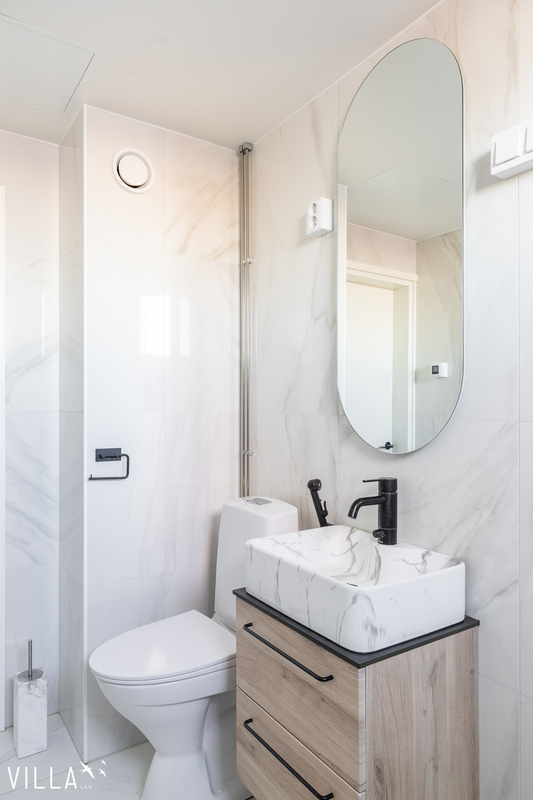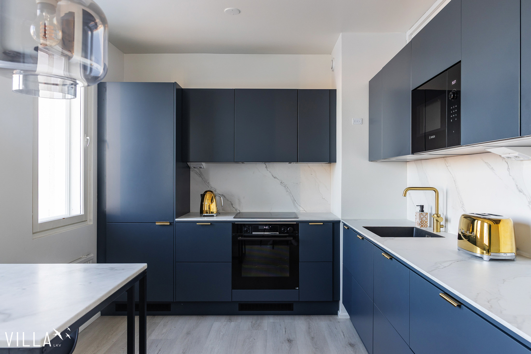 | Keittiön varustelu | Epoq keittiö , tasot Calacatta marmorikuvioista laminaattia. Keittiön välitilassa kaapistoon integroitu säädettävä led-valaistus. Keittiön koneet Bosch Series 6 sarjaa. Mm. Höyryuuni , induktioliesi Flex toiminnolla , Jääkaappi/pakastin NoFrost toiminnolla, astianpesukone Zeolith kuivauksella. |