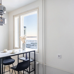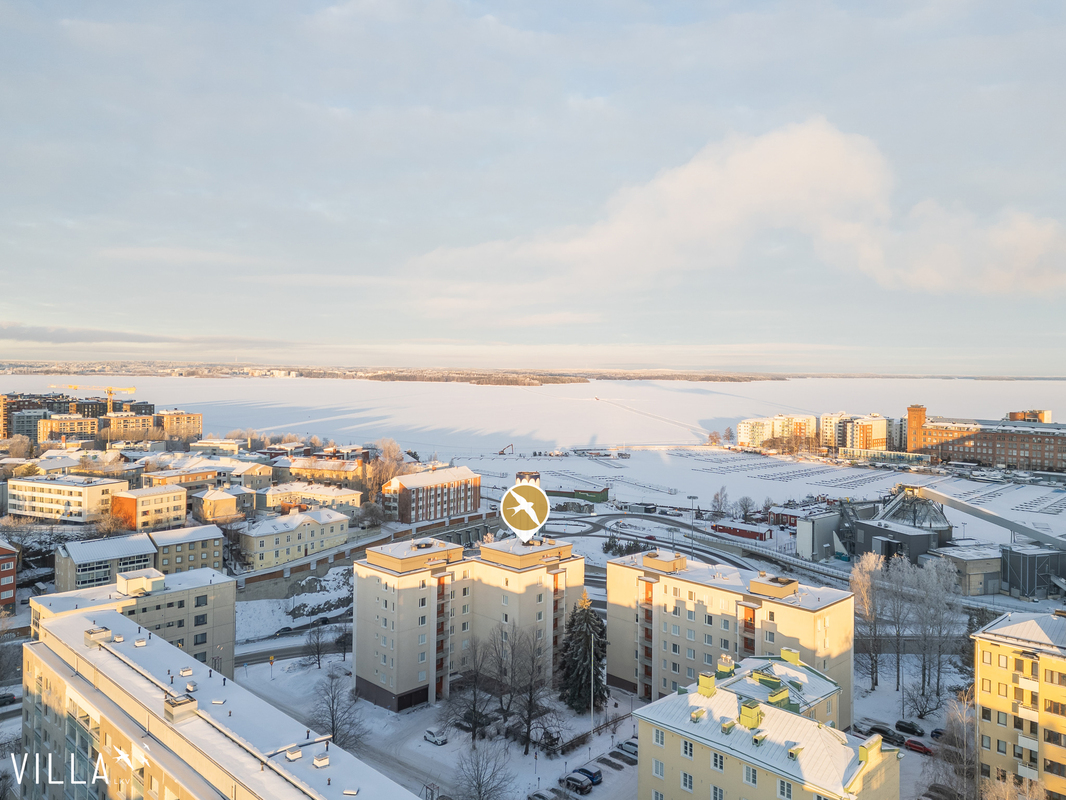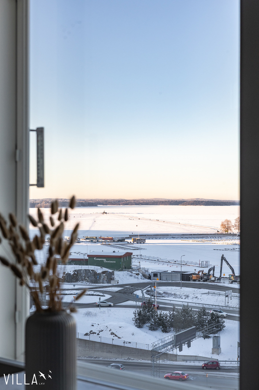 Upea viidennen kerroksen päätyasunto, jossa järvimaisema tuo arkeen valoa ja rauhaa. Keittiön kaunis sininen sävy heijastelee Näsijärven tunnelmaa, ja näkymät avautuvat sekä keittiöstä että olohuoneesta. Laadukkailla materiaaleilla viimeistelty, moderni ja harmoninen kokonaisuus pääsee parhaiten esiin paikan päällä, vaikutelma on vieläkin upeampi.