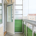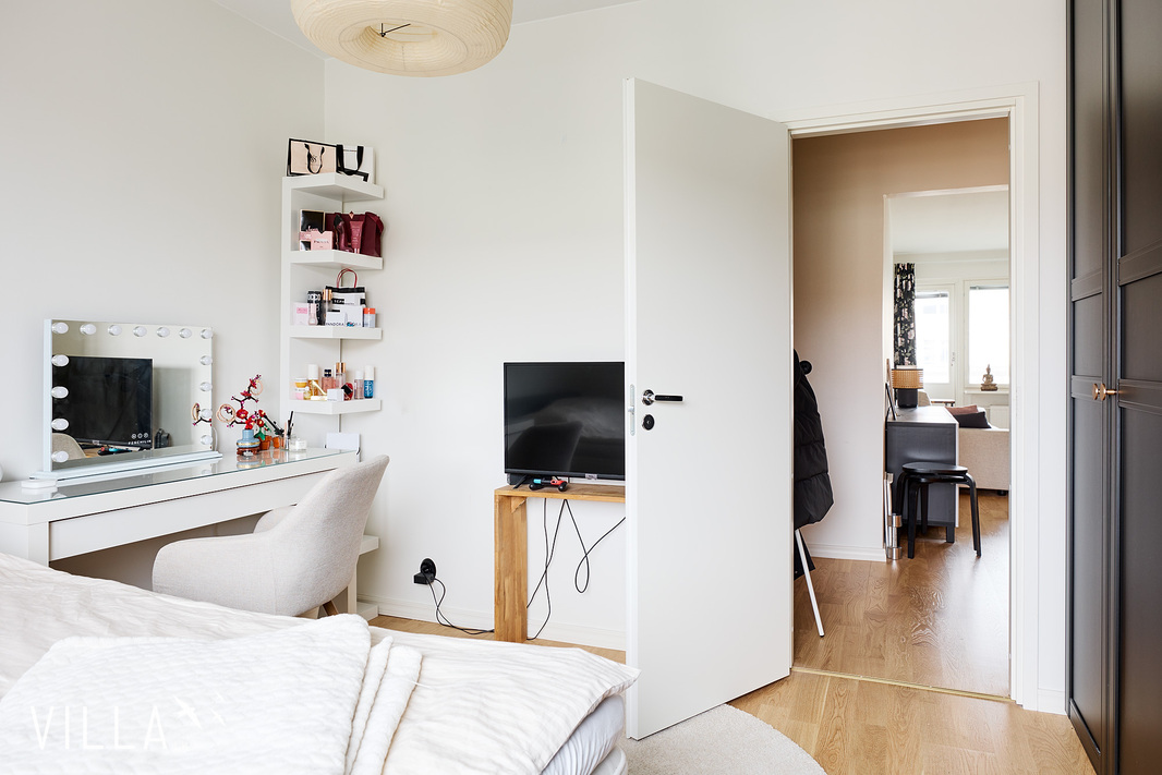 Kokonaisuus on käytännöllinen myös arjessa. Kylpyhuoneeseen mahtuu pesukone, ja säilytystilaa löytyy hyvin sekä eteisestä että makuuhuoneesta. Lisäksi käytössä ovat taloyhtiön pesulatilat sekä varastot. Lasitettu parveke toimii mukavana lisätilana ja tarjoaa paikan rauhoittua tai nauttia vaikka aamukahvista.