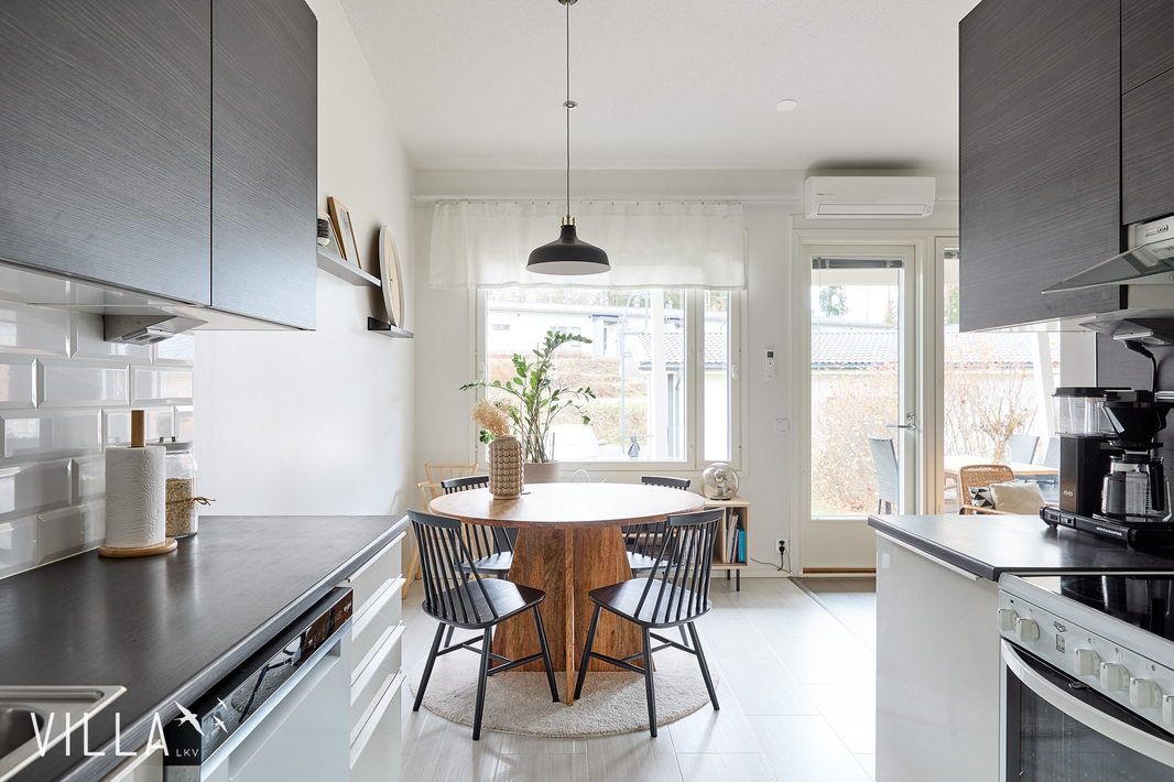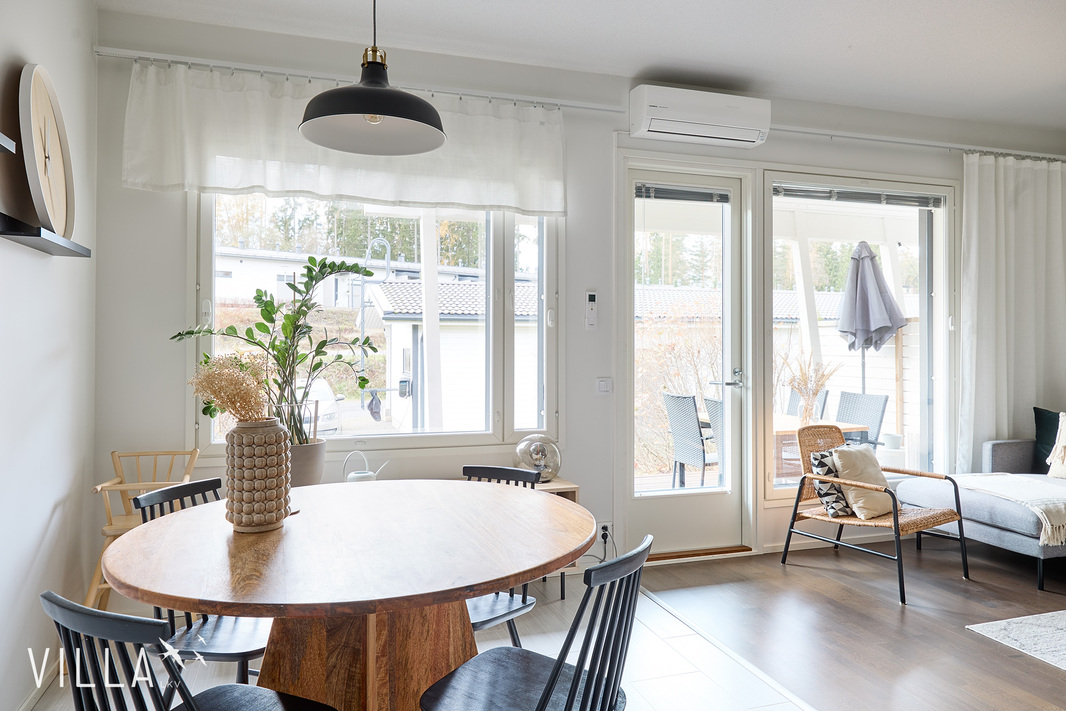 Asumismukavuus on erinomainen ympäri vuoden, sillä vuonna 2019 asennettu ilmalämpöpumppu tuo helpotusta kesähelteillä – sekä mukavaa, viileää raikkautta sisätiloihin. Autoilijoille lisäplussaa tuo oma katospaikka, joka on valmiiksi sähköauton lataukseen muunnettavissa.
