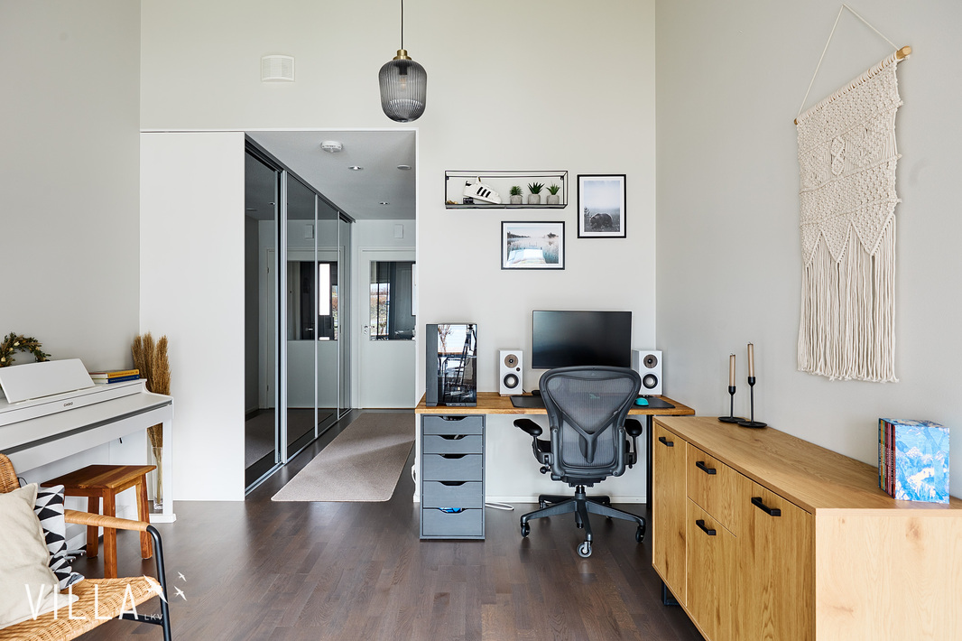 Tämä ihastuttava koti hurmaa heti ensi hetkestä. Pintamateriaalit ja kalusteet on valittu kestämään aikaa ja sopivat erinomaisesti monenlaiseen makuun ja sisustustyyliin. Tavallista korkeampi huonekorkeus olohuoneessa, keittiössä ja makuuhuoneessa korostaa tilantuntua ja avaruutta.