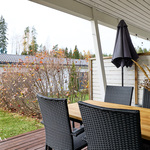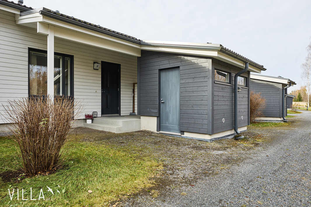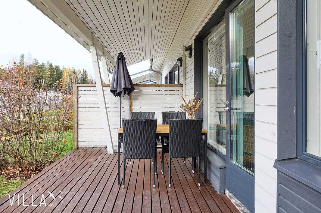 Osittain katettu terassi avautuu päiväauringon suuntaan ja toimii kesäisin viihtyisänä jatkeena oleskelutiloille. Takapihan nurmialueen hoidosta huolehtii yhtiön yhteinen robottiruohonleikkuri, ja lisäksi yhtiön piha-alueella on kaikille asunnoille varatut kasvatuslaatikot – täydellinen mahdollisuus viherpeukaloille. Säilytystilaa on runsaasti – kaapistojen lisäksi käytössä on oma, etupihalla sijaitseva varasto.