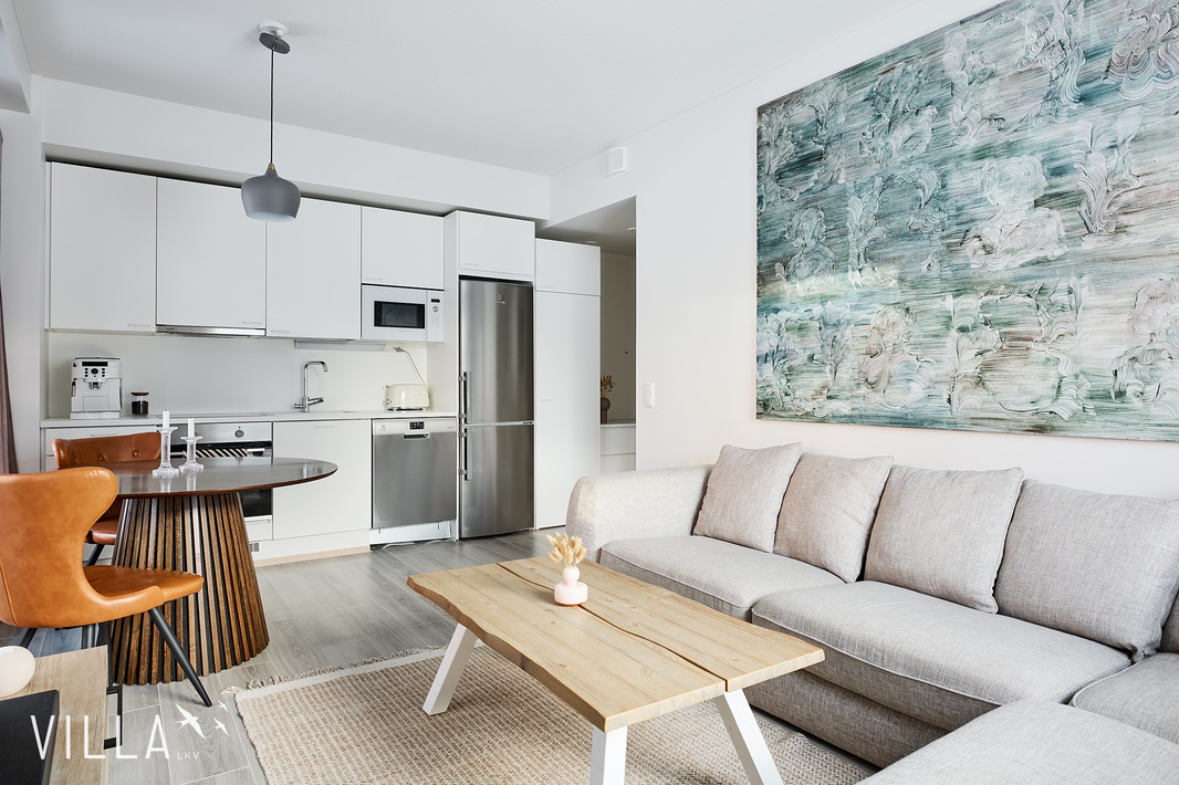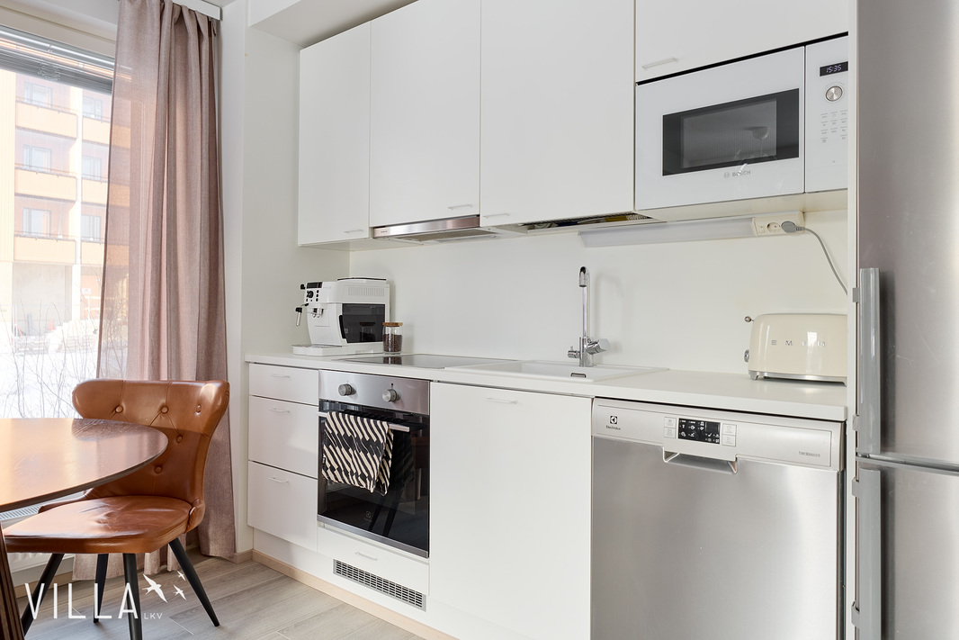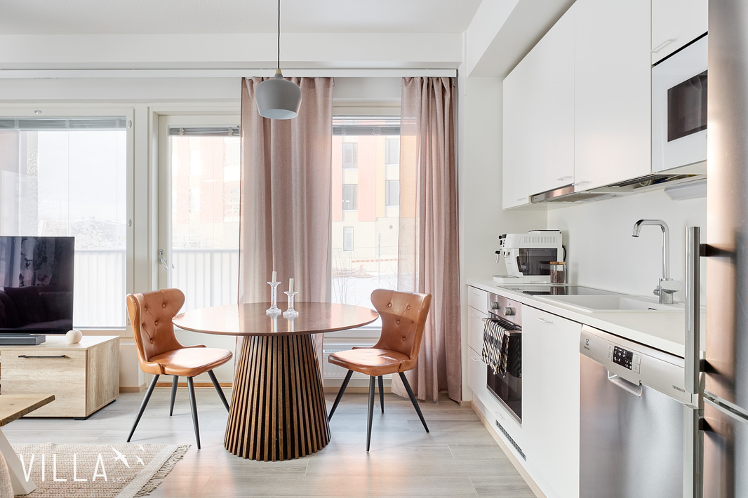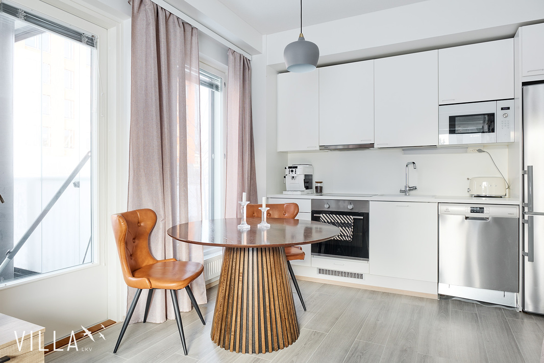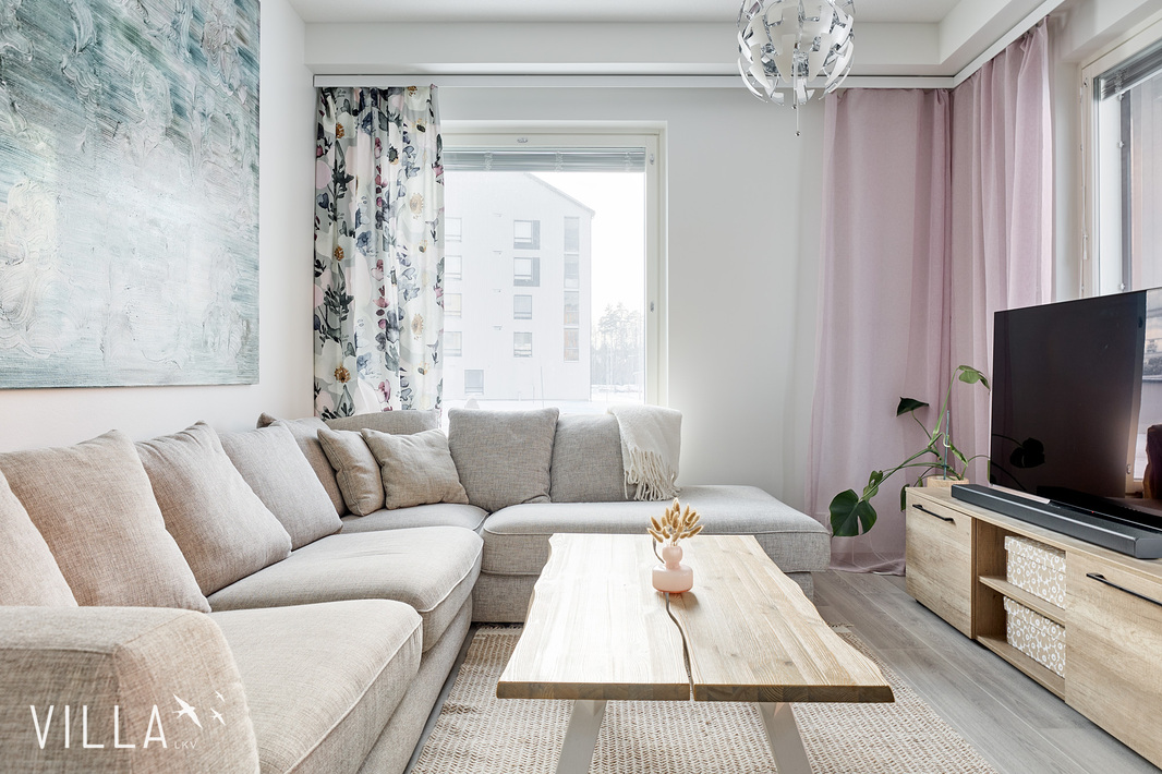 Suuret ikkunapinnat, vaaleat ja raikkaat materiaalit sekä moderni ilme luovat harmonisen kokonaisuuden, joka kestää aikaa. Asunnon kunto on erinomainen ja viimeistely huoliteltua, joten tämä koti on myös varteenotettava vaihtoehto uudiskohdetta etsivälle - pääset muuttamaan valmiiseen kotiin ilman rakentamisen odotusta.