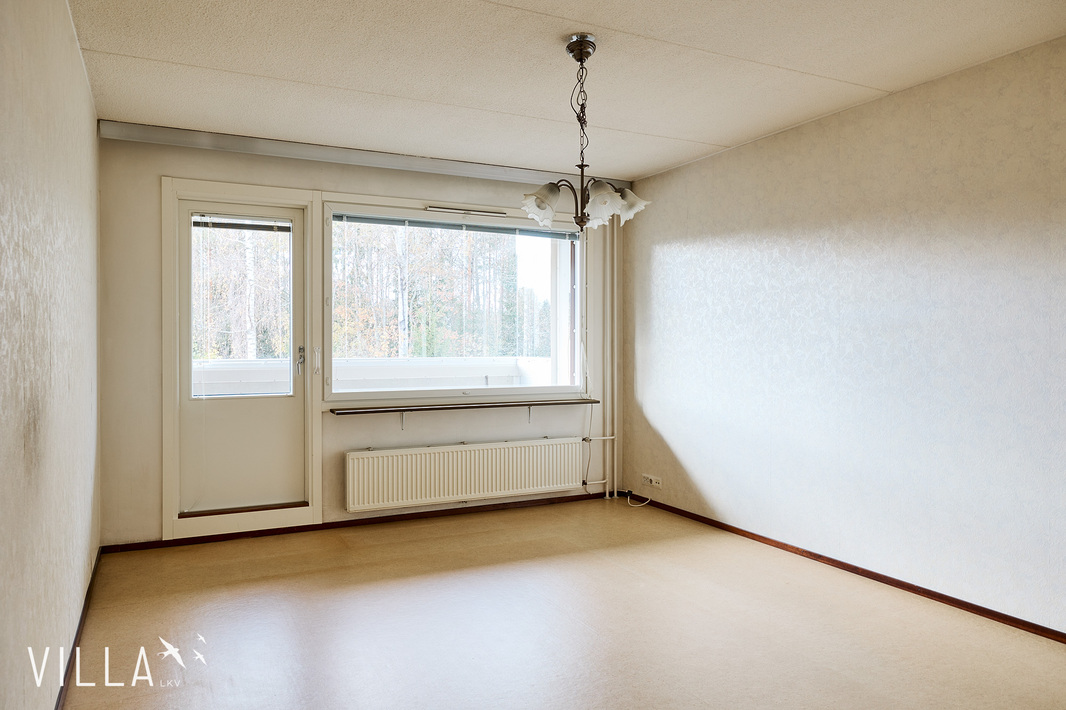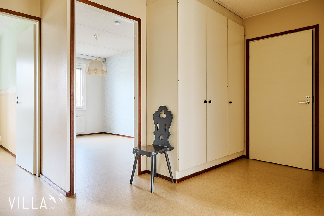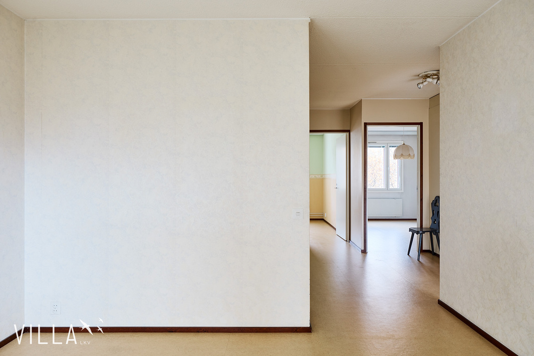 Valo ja tilan tuntu tekevät tästä kodista aidosti viihtyisän. Sen pohjaratkaisu on toimiva ja huoneet avaria, johon parveke tarjoaa kivaa lisätilaa. Kodin pinnat kaipaavat jo päivitystä, mutta juuri se antaa sinulle mahdollisuuden toteuttaa remontti omien mieltymystesi ja tyylisi mukaisesti – tästä saat loistavan pohjan viihtyisälle ja omannäköiselle kodille.