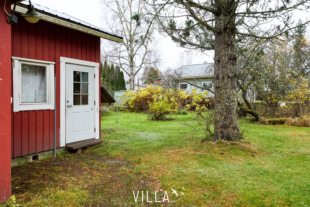 Punainen tupa ja vehreä tontti Nokian Tyrkkölässä