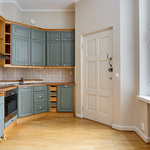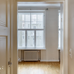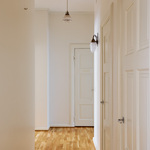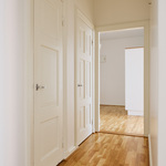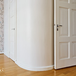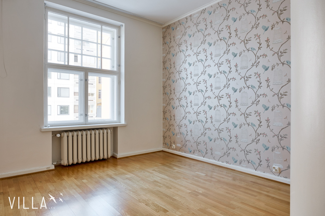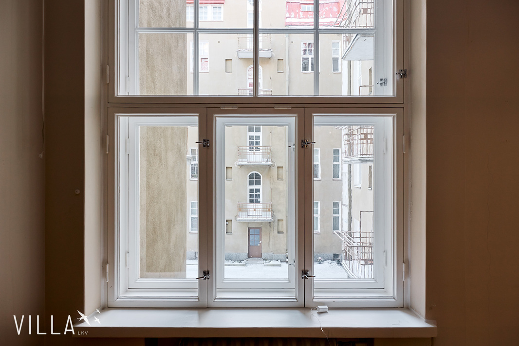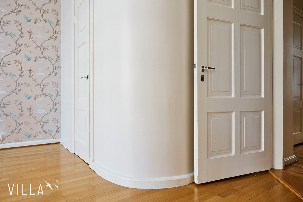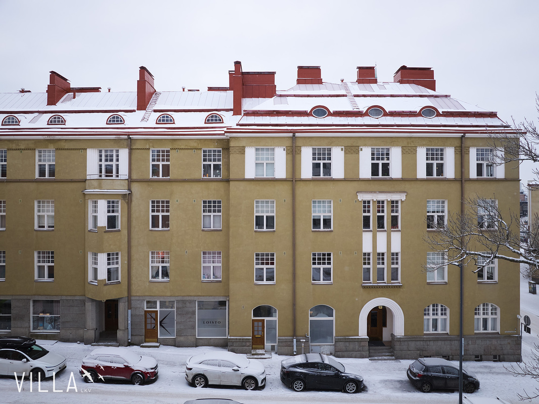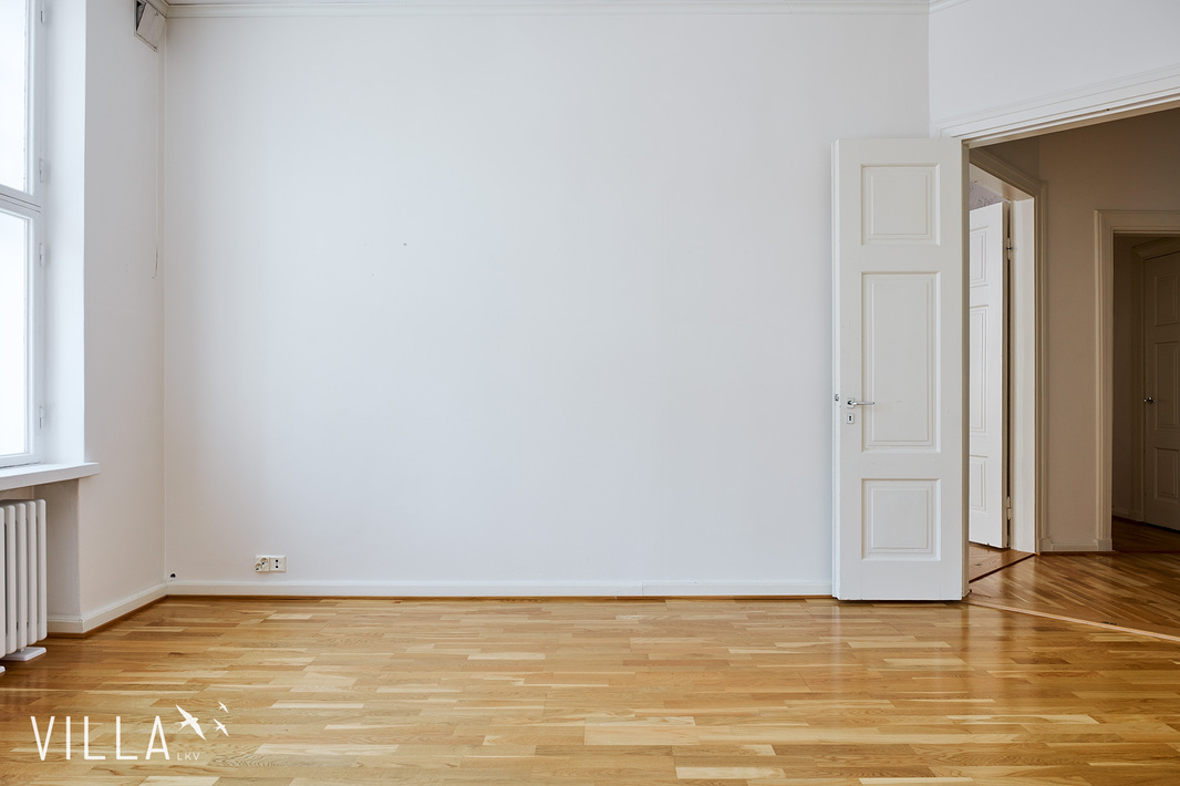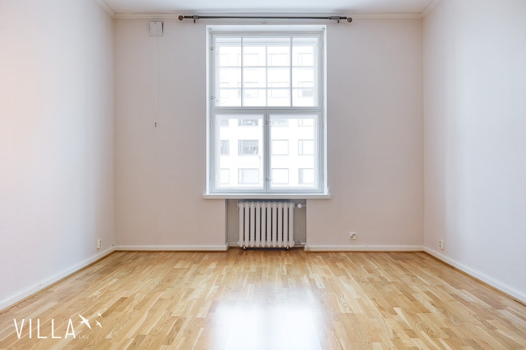 Tässä asunnossa jugend-ajan parhaat ominaispiirteet pääsevät oikeuksiinsa. Oleskelutilat ovat poikkeuksellisen avarat ja mittasuhteiltaan vaikuttavat. Hulppea huonekorkeus luo tilaan ilmavuutta ja arvokkuutta, jota uudemmassa rakentamisessa harvoin kohtaa. Syvät ikkunalaudat ja kauniit ikkunaruutujaot kehystävät luonnonvalon pehmeästi sisään ja muistuttavat aikakaudesta, jolloin arkkitehtuuri oli myös käsityötä.