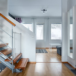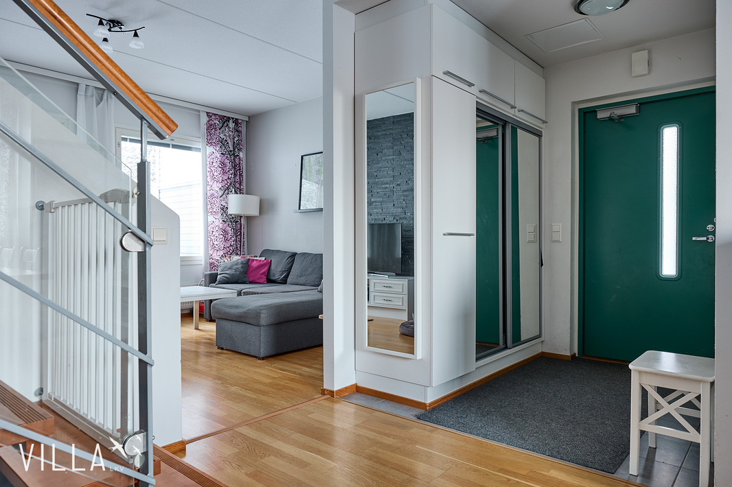 Pohjaratkaisu on kaksikerroksinen ja hyväksi todettu. Tilat jakautuvat loogisesti ja tarjoavat väljyyttä asumiseen. Erityisesti takapiha on tämän kodin selkeä vahvuus: suojaisa piha rajautuu Teivaalanharjun puisto- ja metsäalueeseen, tarjoten poikkeuksellisen rauhalliset näkymät ja luonnon tuntua. Myös yläkerran parveke avautuu samaan suuntaan.