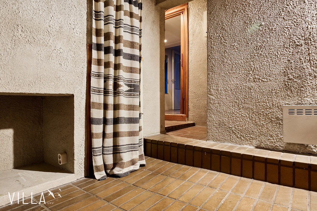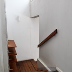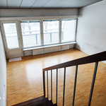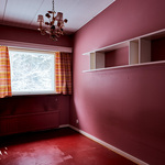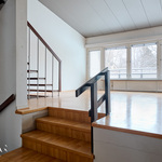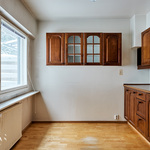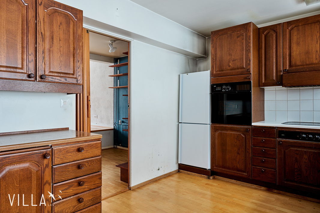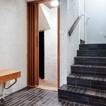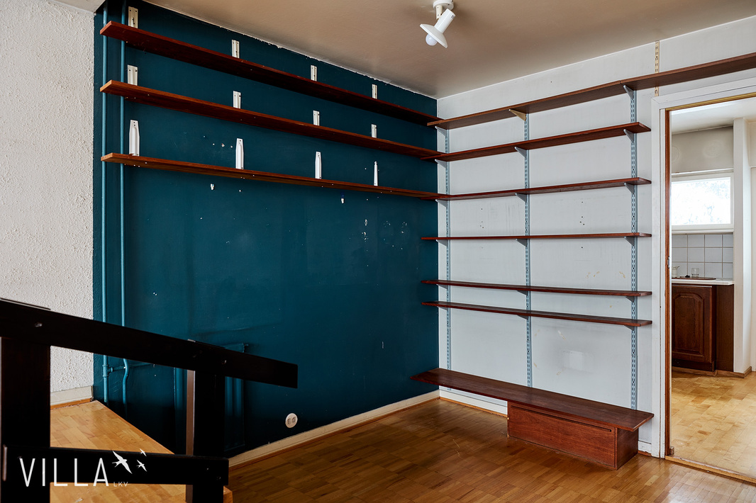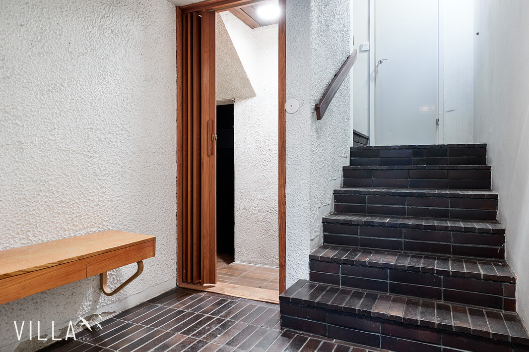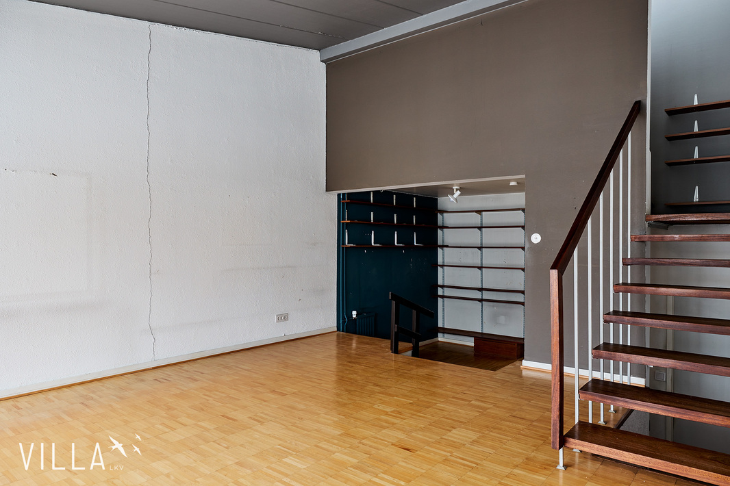 Tämä 1960-luvun rivitaloasunto tarjoaa asuintilat kolmessa kerroksessa ja osittain eri tasoissa. Muutamat portaat rytmittävät tiloja ja tuovat kokonaisuuteen persoonallisuutta sekä aikakaudelle ominaista arkkitehtonista ilmettä.