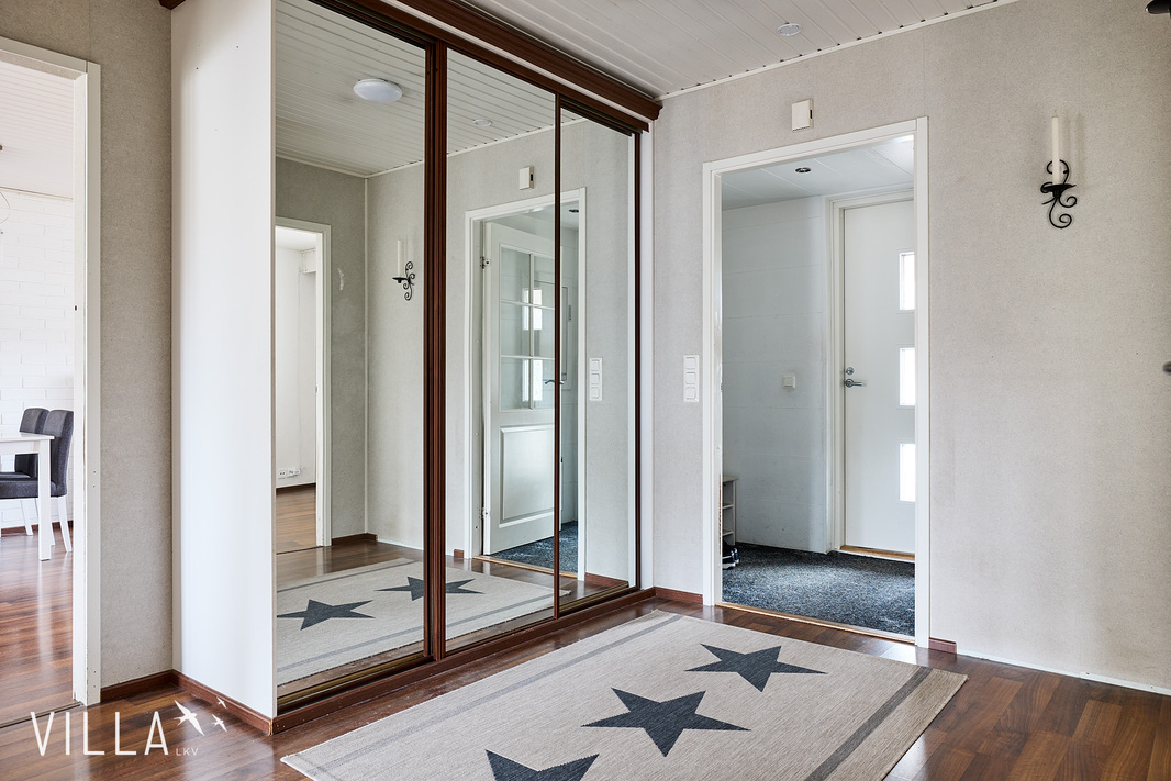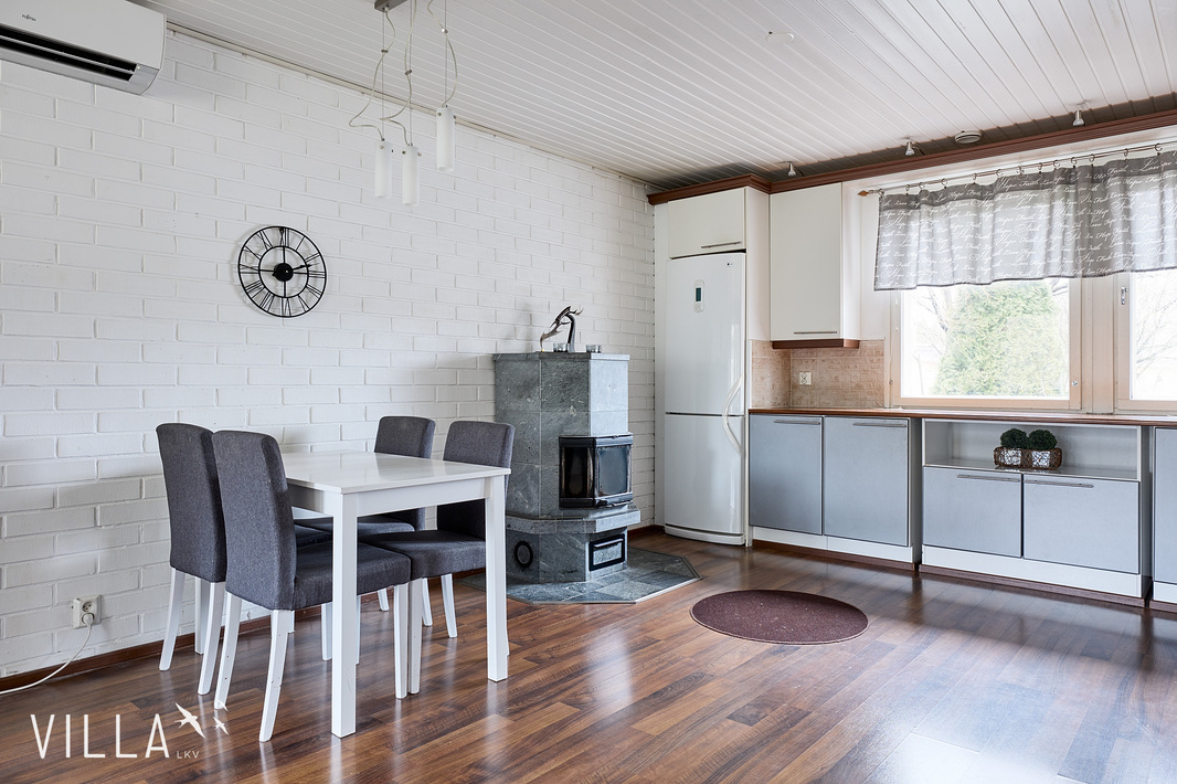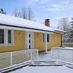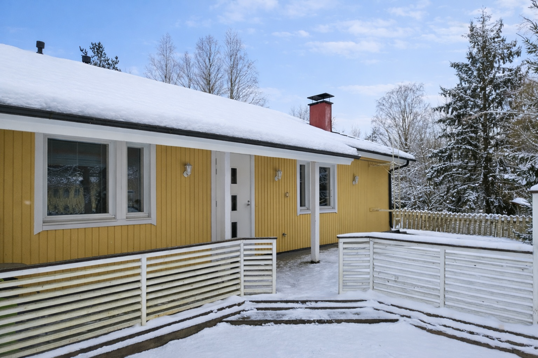 Tämä yksitasoinen omakotitalo tarjoaa kodikkaat ja käytännölliset puitteet asumiseen. Talon selkeä pohjaratkaisu toimii erinomaisesti perheelle: kolme makuuhuonetta sijoittuvat rauhallisesti omaan päätyynsä ja päämakuuhuoneessa on lisäksi oma vaatehuone. Avokeittiö, ruokailutila ja olohuone muodostavat yhtenäisen, avaran oleskelutilan – tilan, jossa viihtyy niin perheen kuin ystävien kesken. Lämpöä ja tunnelmaa tuo kaunis varaava takka ja asumismukavuutta lisää vuonna 2018 asennettu ilmalämpöpumppu, joka tukee myös lämmitystä ja viilentää tiloja kesähelteillä.