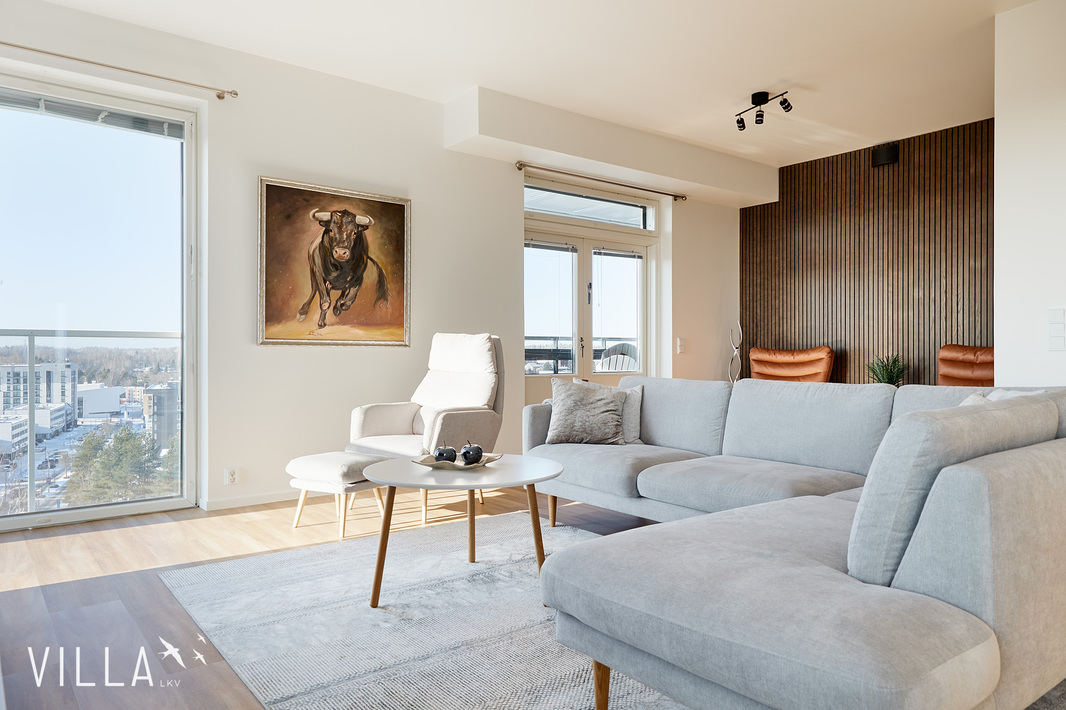 Tällaisia koteja tulee Nokialla harvoin vastaan. Asunto Oy Nokian Maamerkin ylimmän, 12. kerroksen 176,5 m² penthouse tarjoaa asumista, jossa avarat tilat, vaikuttavat näkymät ja viimeistelty laatu kohtaavat ainutlaatuisella tavalla.